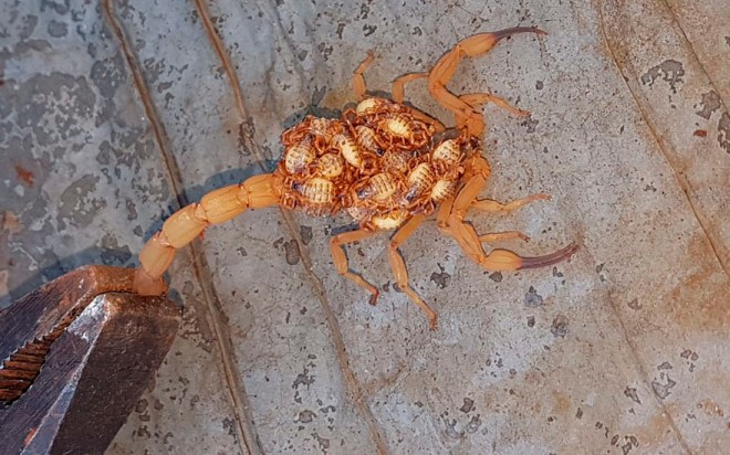 “No período da chuva, aumenta muito a incidência de acidentes com escorpião e também a aparição dos bichos. Ele se alimenta de animais vivos, baratas, grilos e cupins, e ele consegue ficar até seis meses sem se alimentar. Ele não fica sem água, por isso ele fica em lugar úmido”, diz.